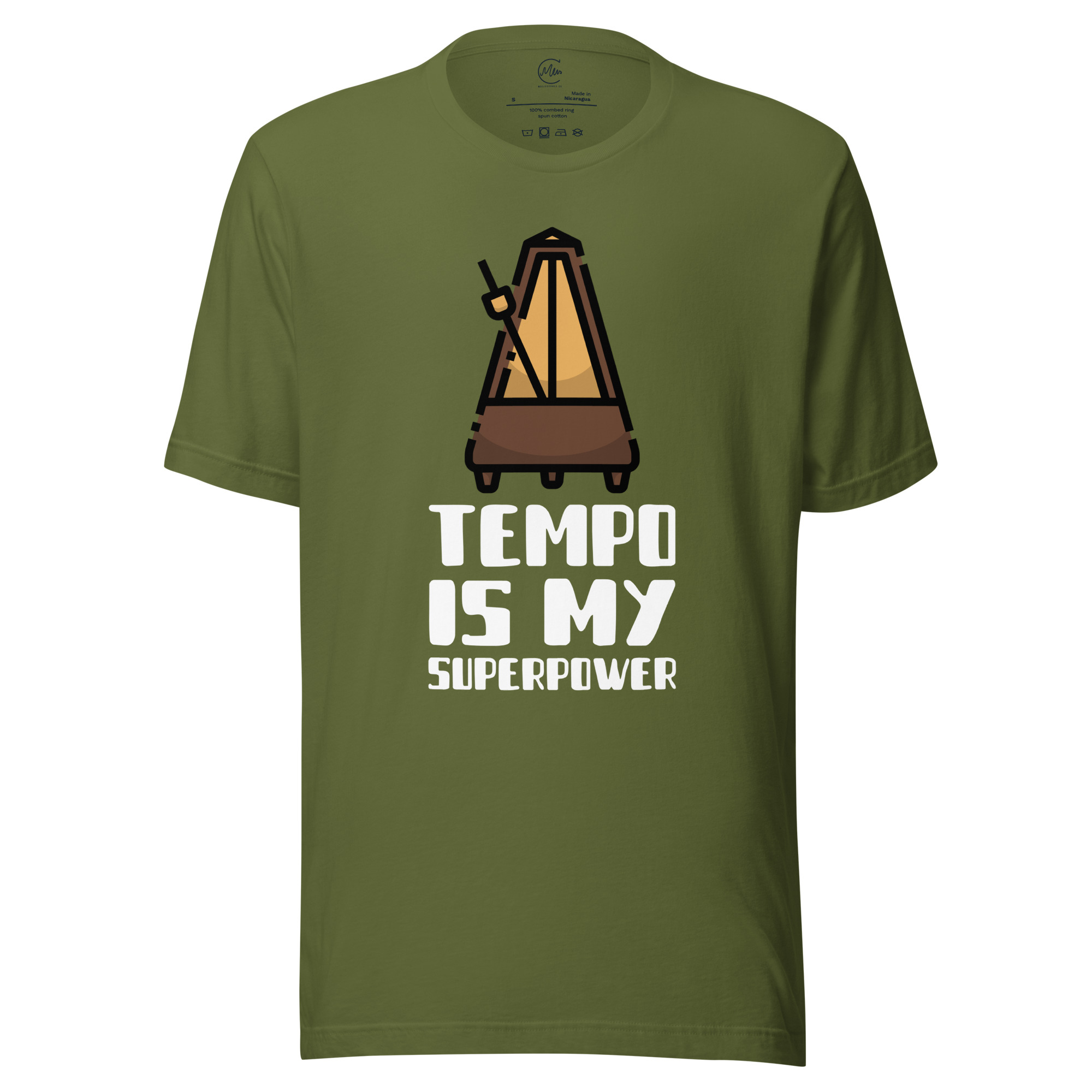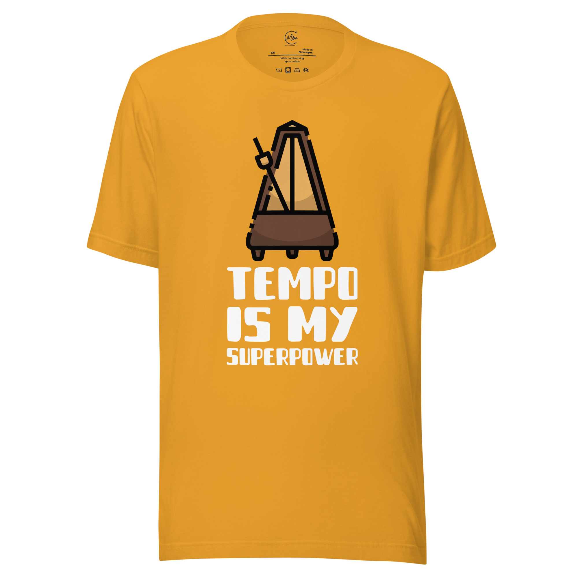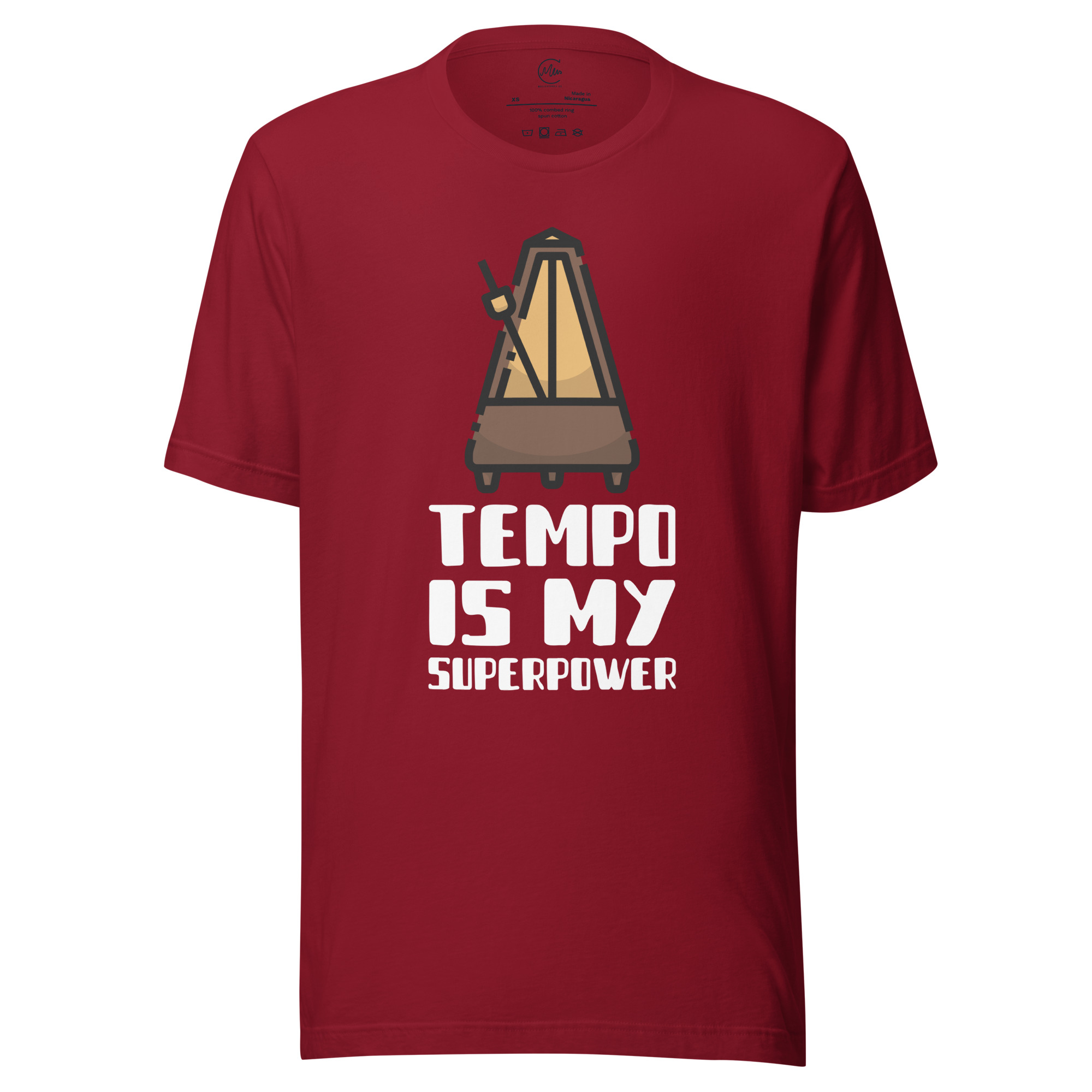 No todos entienden la importancia de marcar el tempo, pero los músicos saben que ahí está la magia. Esta camiseta con la frase “Tempo is my superpower” y la ilustración de un metrónomo es un guiño divertido para quienes dominan el ritmo como un superhéroe.