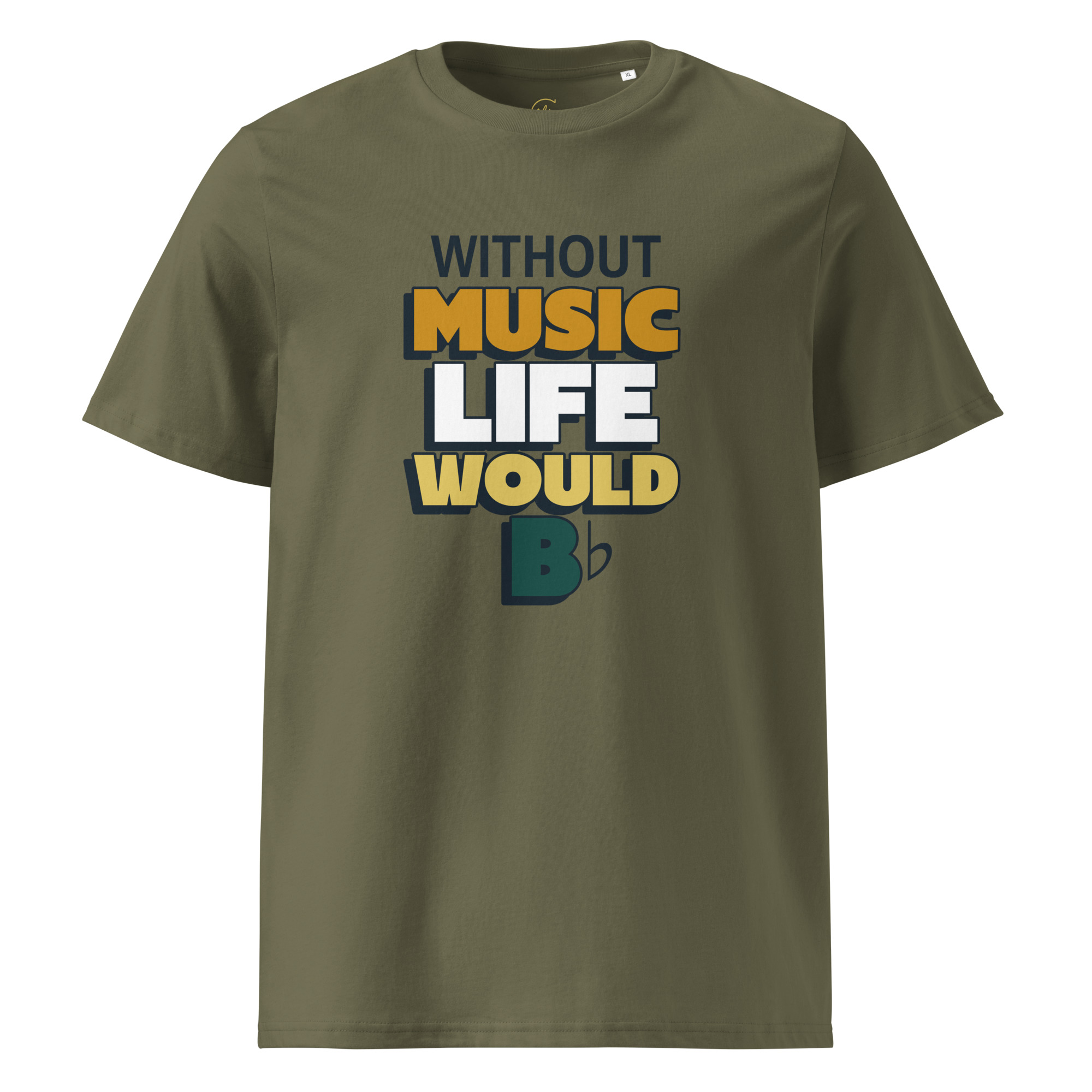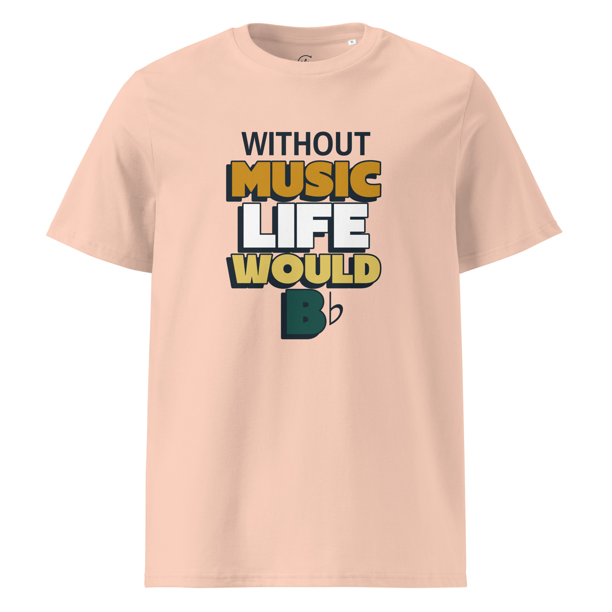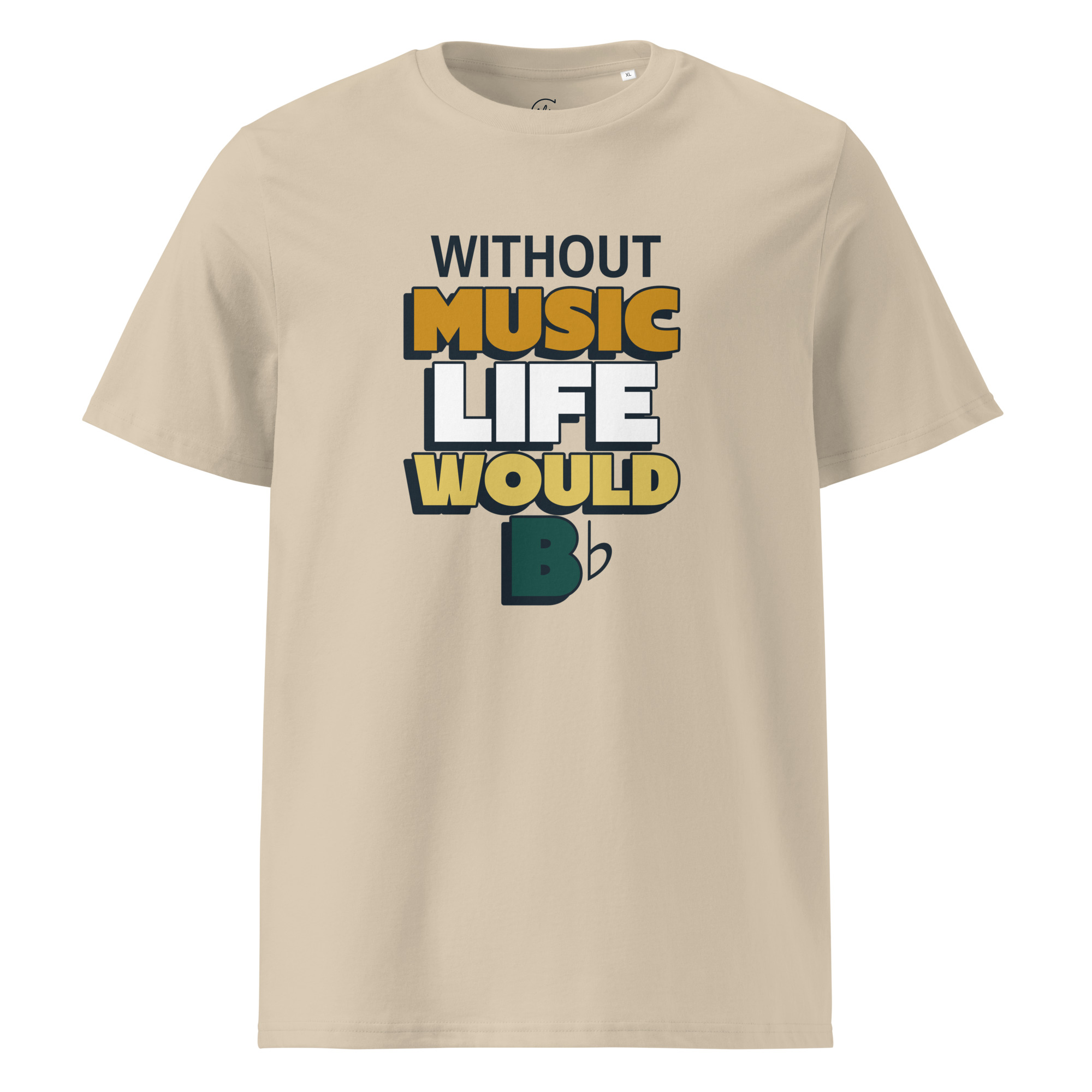 Hay frases que sólo un verdadero músico entiende, y esta es una de ellas: “Without music life would B♭”. Una camiseta con un juego de palabras que mezcla humor, teoría musical y una verdad universal: sin música, la vida perdería toda su gracia.