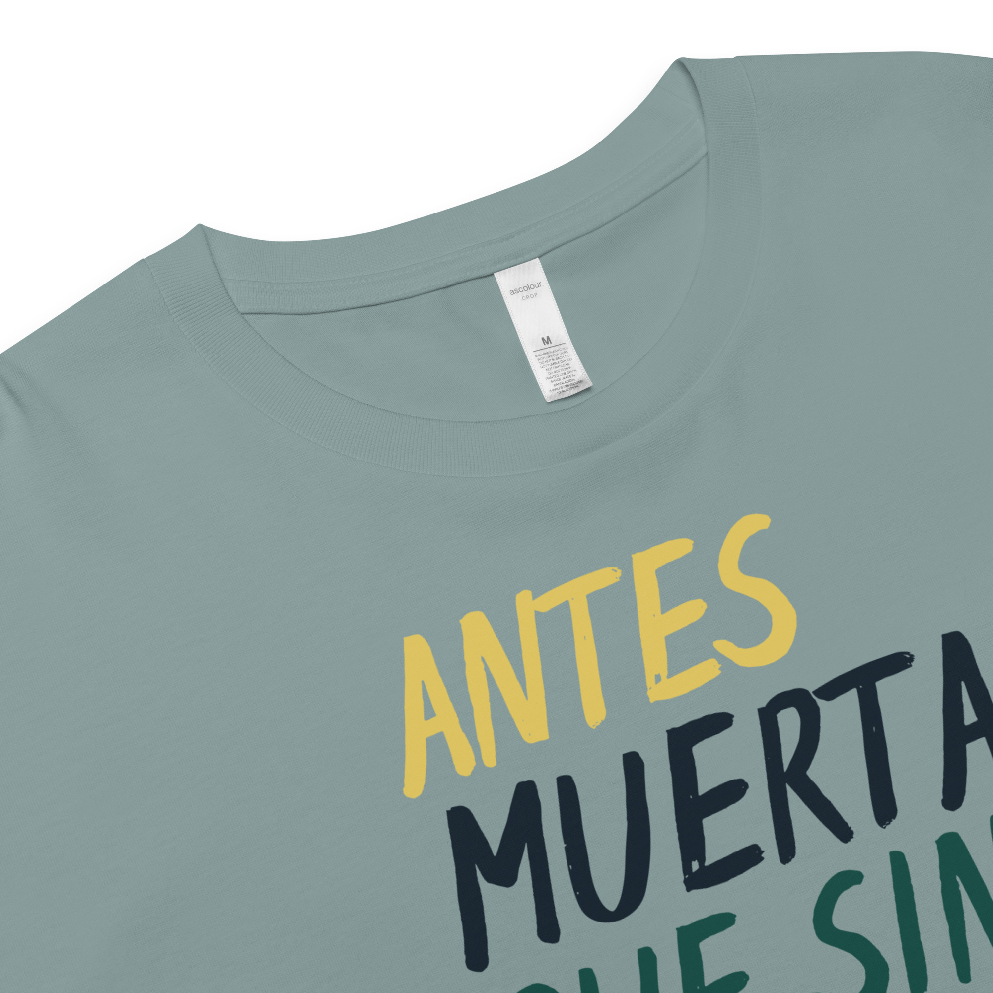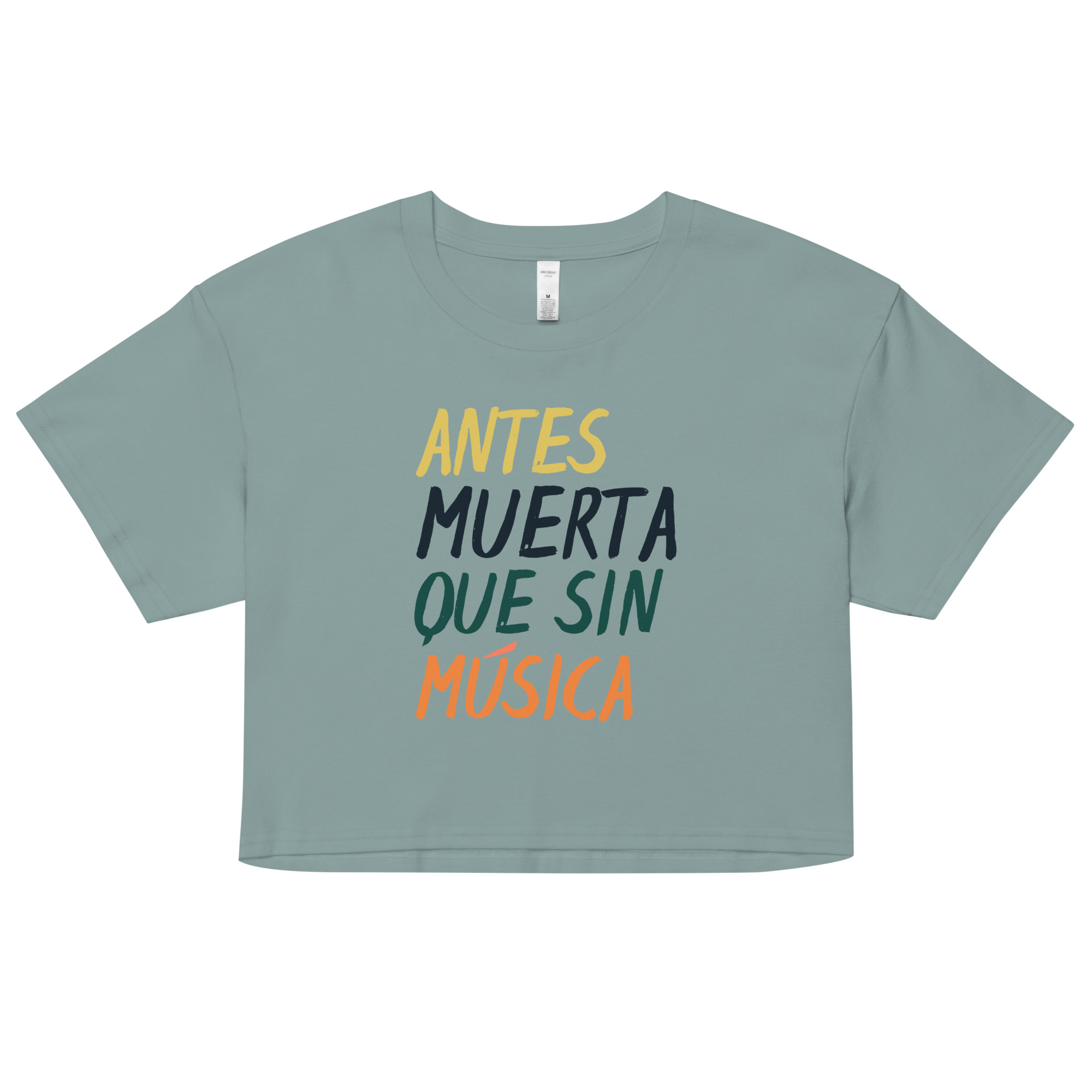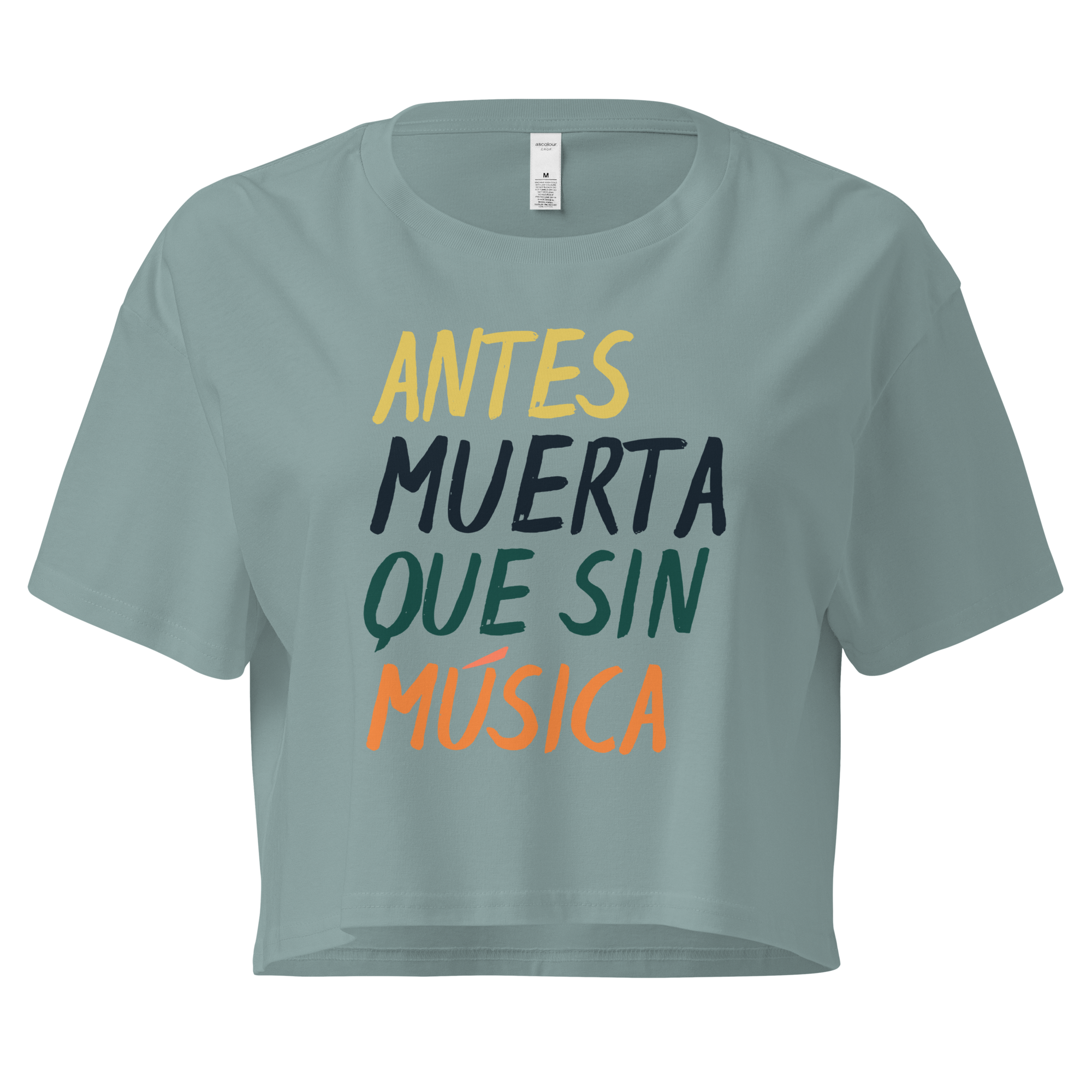 Hay frases que no se discuten, y esta es una de ellas: Antes muerta que sin música. Este crop top azul verdoso no es solo una prenda, es una declaración de principios para quienes viven con la música a todo volumen y no imaginan la vida sin ella.